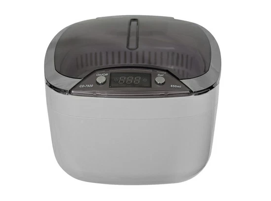 Цифровая серия Технические характеристики: Компактная модель большой емкости Объем: 850 мл (максимальный уровень: 700 мл) Параметры рабочей емкости: 148х126х47 мм) Цифровое управление настройками Цифровой дисплей двух цветов Эффективность очистки выше на 25% Таймер на 5 настроек Функция очистки CD/DVD Материал корпуса: АБС-пластик Материал внутренней (рабочей) емкости: коррозионностойкая сталь SUS304 Мощность: возможность настройки: 50 Вт Напряжение питания: 220 В Рабочая частота: 42 кГц Размеры: 20.3*18.3*14.5 см Вес: 1,1 кг Гарантия 6 месяцев