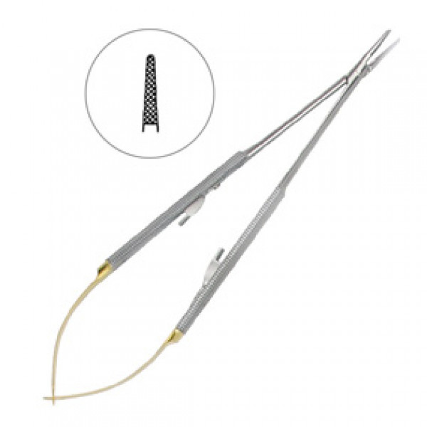 Иглодержатель микрохирургический прямой Castroviejo-Gomel TC, 18 см, карбит вольфрамовые вставки (5-0, 6-0, 7-0)