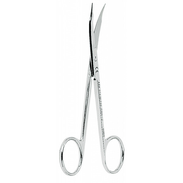 • Ножницы для десны изогнутые, зубчики на одном лезвии, узкие лезвия 13 см.
