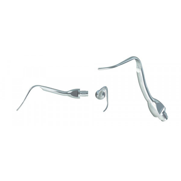 Для более глубокого лингвального и букального субгингивального скалинга, также подходит для легкого супрагингивального скалинга и точечных удалений, но острие повернуто вправо для лучшего достижения области фуркаций